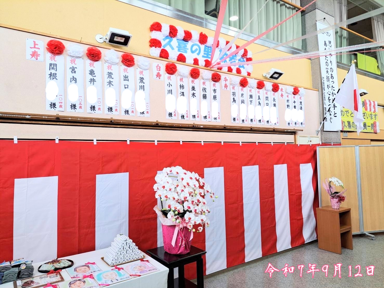 ご利用者様並びに地域にお住まいの方々の“ご長寿”に敬意を表します。皆様、おめでとうございました。 ※19日は、敬老会アトラクション“水貴 かおり 歌謡ショー” を予定しています。