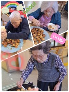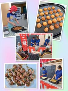 今日の入所者さんのおやつは“たこ焼き”(^O^)/ 皆で協力しながら完成させました🐙 うーーうましっ(^O^)