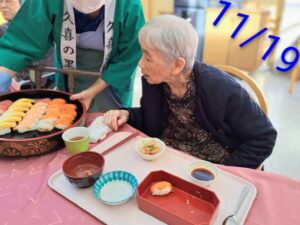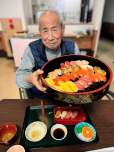 さぁ 恒例の寿司バイキング👍 利用者様は何貫いけるのだろうか……。無制限一本勝負が始まった……(^O^)/