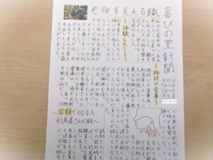 昨年、介護のお仕事体験に来られた、久喜市立鷲宮東中学校の生徒さんから、心温まるお手紙を頂戴いたしました。