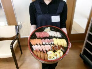 お待ちかねのお昼、お寿司食べ放題デス🍣